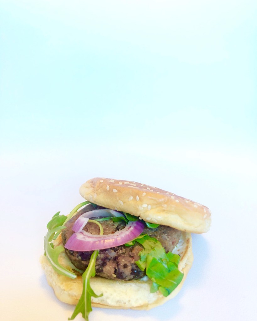 For the burgers – Use your preference of bread, toast it. Spread some mayonnaise on one side of the bun, add more cucumbers, some arugula, onion and place the black bean patty on top.